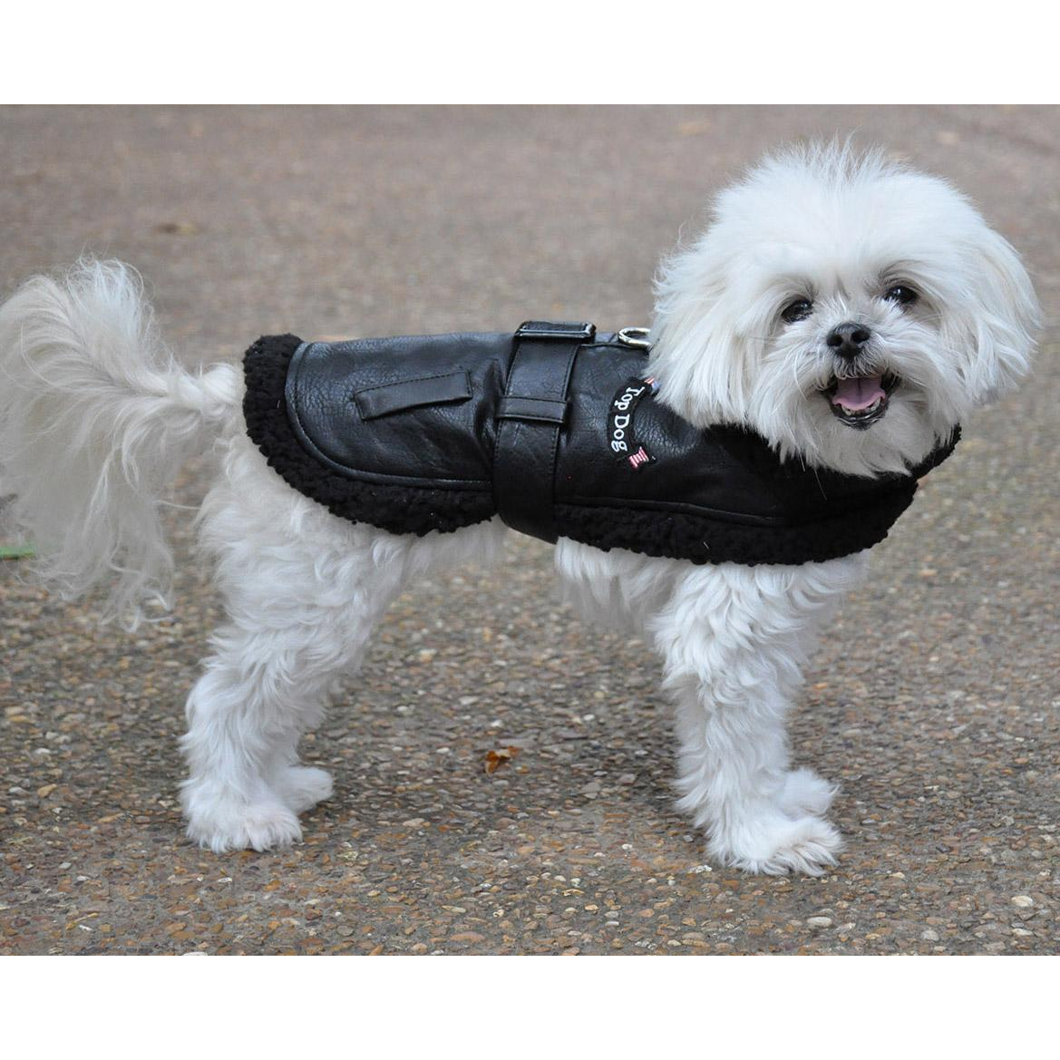 Give your pup an elegant bomber style harness coat with Doggie Design's Top Dog Flight Coat in Black.